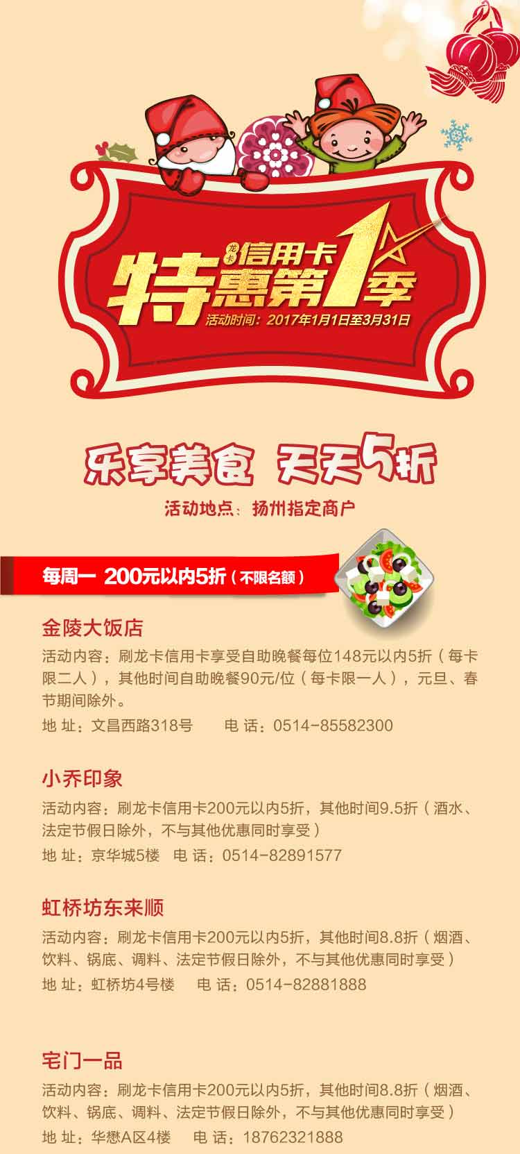 龙卡信用卡特惠2017年第1季(扬州)