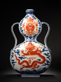 清乾隆·青花红彩龙纹八吉祥如意耳葫芦瓶
