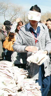 至于充分展示标语口号大国风采的惊人之语,更加的触目皆是:人民罪犯人民爱,人民罪犯爱人民——监狱。严禁盗割电线,五万伏高压,一触即死,不死法办——电网。人死债不烂,父债子来还——农信社。人和狼狗配种场——人和镇配种场。垃圾分类,从我做起——大道两侧。用三个代表思想指导我们的屠宰事业——屠宰场。宁添十座坟,不添一个人——计划生育。不强拆不上访,争当良民好荣光——拆迁部门。这是见诸网络的,我曾亲见一新开张的殡仪服务中心,门前悬一红布横幅曰“欢迎各级领导光临指导”,欢迎各级领导光临殡仪馆,狼子野心暴露无遗。又曾亲见某中学门口刷标语一条:“学生为本教师服务”,不知诸君对此有何高见?
