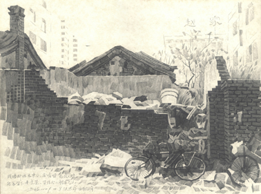 当第一张铅笔画在画板上形成,我自己都被眼前的景色震撼了!铅笔,这种特有的方式很完美地将胡同的古旧、残破、久远的风采表现了出来,像西风瘦马的情怀,像牧笛吹出的历史久远的歌谣……为此,我欣喜若狂!
