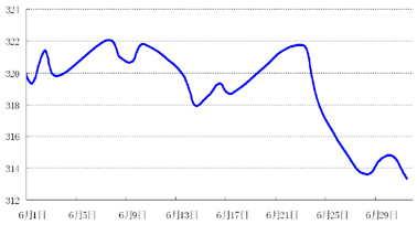 因希腊财政紧缩计划通过,欧元区加息预期再起,美国债务问题受评级机构警告,欧元兑美元上周涨332基点至1.4522。人民币兑美元涨至6.4645