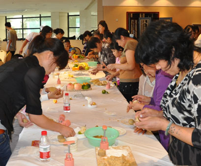 在月饼制作环节,专业的月饼制作师首先介绍了月饼悠久的历史及制作程序,随后,大家便迫不及待开始一展身手,制作月饼。和面、拌馅、压模成型,不论大人还是小孩,个个兴致高昂,互相交流、观摩,活动现场气氛热烈。在等待月饼烤制的过程中,客户还在客户经理的带领下兴致勃勃地参观了民间艺术品展览和现场制作表演,每人挑选了一件心仪的民间艺术品作为收藏。