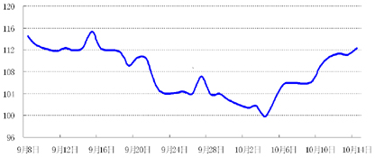 货币市场:上周货币市场各期限回购利率全面下跌。国庆节后有大量资金释放,央行公开市场操作虽小幅回笼,不改资金宽松局面