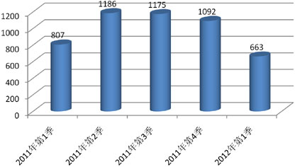 与2011年各季度相比,信托行业在2012年的第1季度显得有些冷清,产品发行数量同环比均大降:共有57家信托公司发行了信托产品,新发产品663款,较2011年第4季度的1092款减少近40%。通过调查发现,许多信托公司都放缓了新产品的发行,如2011年第4季度以161款位居发行之首的长安信托仅发行了43款,而本季度发行量最大的信托公司也仅发了54款。
