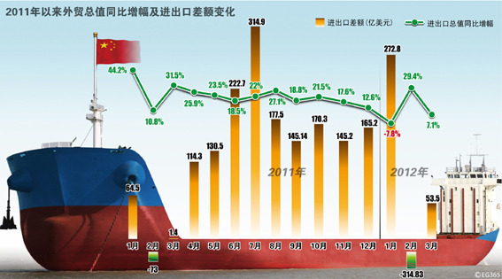 2011年以来外贸总值同比增幅及进出口新式额变化