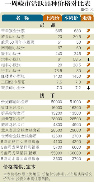 过去一周藏市回稳态势日趋明显,邮币两市热品均小幅回升,唯一不足成交仍没有实质性放大迹象,市场尚处于阶段性底部小规模的修复形态,介入资金仅是小规模试探性运作。邮市:市场热门板块振荡加剧,其中“壬辰龙”全张票和小版张分别回升到400元和140元附近盘旋,“无锡亚展”双连小型张微涨至30元,老邮中“庚申猴”邮票维持在10700元附近。币市:“龙年”(贺岁)流通币依然是近期市场成交热点,价格在回落到10.5元附近后出现反弹,目前因入市货源短暂趋紧,价格回升至13.5元左右。金银币板块略有企稳,部分品种微升,但投资者的目光已聚焦尚未入市的“青铜器”金银币上,估计该币后市短线热点可期。