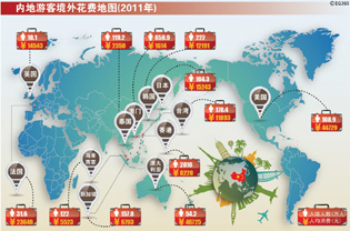 内地游客境外花钱地图(2011年)