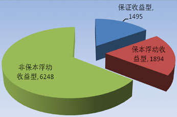 虽然本季度新品的绝对发行量环比增长超两成,但从风险收益特征看,保证收益型、保本浮动收益型与非保本浮动收益型理财产品的绝对发行量却有增有减。其中,非保本浮动收益型发行6248款,环比增加1677款,增幅达36.69%;市场占比为64.83%,环比增加7.8个百分点。保证收益型发行1495款,环比增加19款,增幅1.29%;市场占比为15.51%,环比减少近3个百分点。