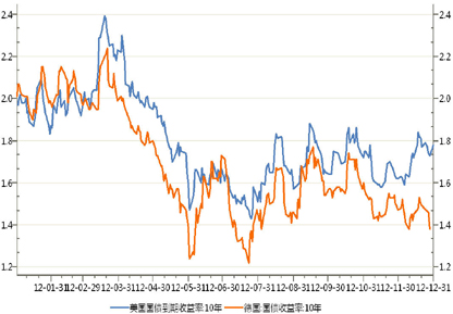 图7 2012年美国、德国10年国债收益率走势
