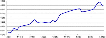 受4月高于预期的中国贸易数据,以及央行推进汇率改革的政策预期影响,人民币升值节奏加快,人民币兑美元即期价格本周累计升值0.2%。