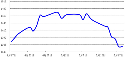 上周,因美元走强,加之投资者对经济前景预期乐观,风险偏好增强,黄金价格大幅走低,单周下跌89.20美元/盎司至1358.50美元/盎司;此外,因先后受到欧元区经济数据黯淡、美国原油库存上升,以及美国股票市场攀升的影响,上周,布伦特原油价格先降后升,全周较前周周五下行0.73美元/桶至104.64美元/桶。