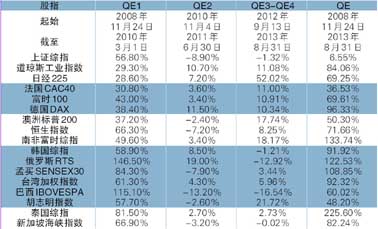 自2008年11月美联储实施“量化宽松”政策至今,各主要国家的股指均大幅上涨,而同期上证综指累计涨幅仅为6.55%,且在