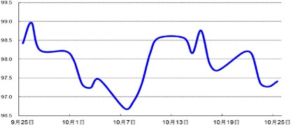 上周五,美元兑人民币中间价报6.1333元,较前周五下行39个基点,人民币升值趋势延续;美元兑人民币即期价格下行势头强劲,但在6.08元整数关口遭遇较强阻力,周五即期价格盘终收6.0840元,较前周五下行128个基点。