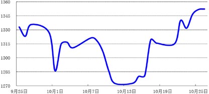 上周,因美国经济数据疲弱,市场对美联储维持购债规模的预期加强,机构避险需求增多,国际金价显著上升36.53美元/盎司至1352.28美元/盎司;此外,布伦特原油价格较前周五下降3.01美元/桶至106.93美元/桶。