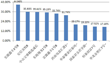 本月进入收益前十的产品股票型仅有3款,混合型产品占了7款。(图10)