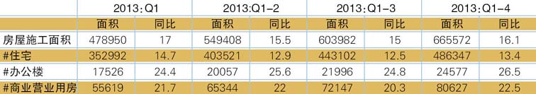表4 2013年各季度房屋建设情况 单位:万平方米,%