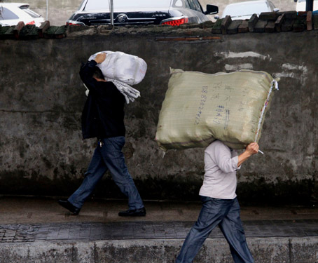 曾经几次到过重庆,拍过一些东西,高楼美女,古街小吃,码头桥梁,最后还是觉得“棒棒”更有特点。沿街一走,或是席地而坐等活的,或是三五成群聊天的,或是围着雇主讨价还价的,或是满头大汗干活的,或是收工之后买点小菜回家的,朝天门、十八梯、磁器口、解放碑,到处都是重庆的棒棒。