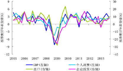 美国:虽然美国去年第四季度经济增速由初值的3.2%被大幅下调至2.4%,但2013年全年美国经济在财政拖累下仍增长1.9%,表现不俗;预计美联储今后仍将坚持每月小幅缩减购债规模的政策取向,相应QE政策将于秋季结束。