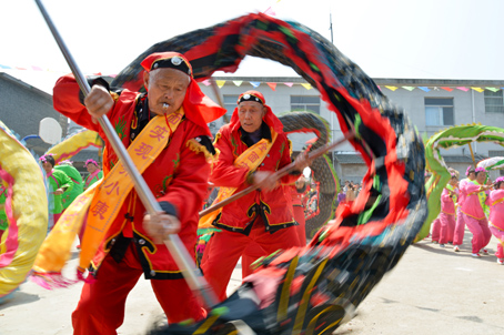 青黄不接的人才问题让熊会长感叹庙会的组织越来越不易,赛会表演时,老人们龙没舞几下,踩高跷的也爬不上高蹬,草草收场。