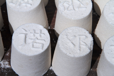 同样熬盐的杨寿祥,儿子早年在外打工,谈了对象,是个红河女孩,后来结婚了,小两口就回到诺邓来。儿媳说:“我原来是在酒店里搞管理的,五年前结婚,两年前回来,就没有再回去了,留下来帮帮老人。”这个有明显城里人特征的女人,经过两年的熬盐,也成了一个老盐工,她说:“我们吃的盐全是自己熬的,虽然诺邓的盐不含碘,但不要担心,碘的摄取渠道很多,很多食物里都有碘,多吃点海带什么的就行了,不一定要依靠盐,诺邓人祖祖辈辈就吃这个盐,也没有谁得大脖子病(甲状腺肿大)。”她还说,谁有个头疼脑热的,用盐在火上烧一下,淬水喝下,可以缓解病痛。