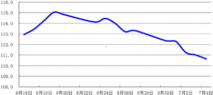 货币市场:上周,半年末时点过后,银行间市场资金面整体趋松,除隔夜质押式回购外,其它质押式回购品种收益率呈现不同程度的下行,其中,7天期品种收益率下行43个基点至3.42%。
