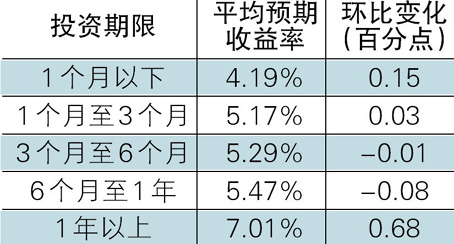 收益表现:短期产品收益上升,中长期产品小幅下降