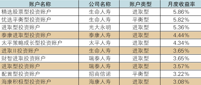 表2 2014年6月投连险投资账户收益表现TOP10