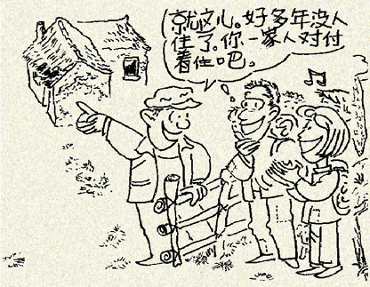 王二一家刚搬到一个新村子。村里人好心,给了王二一家几间破草房,让一家人暂时有个地方能对付着住。