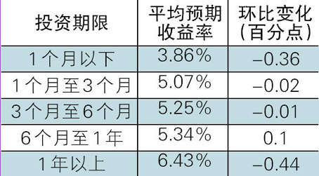 收益表现:市场资金面继续宽松,各期限类型产品预期收益普遍下降