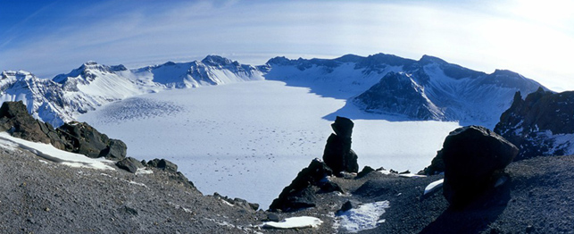 长白山天池,坐落在吉林省东南部的长白山自然保护区。因其水面海拔达2150米,故称“天池”。长白山是一座休眠火山,曾于1597年、1668年和1702年喷发过。当火山爆发喷射出大量熔岩之后,环形火山口积水成湖,便成了现在的天池。■ 邓立亚/图