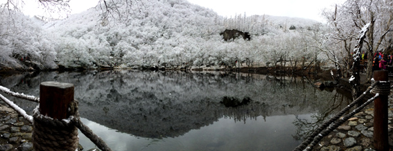 雪岭界天人不到,冰池耀日俗难观。听说,冬季里领略长白山美景要对机遇,更看运气,能看到雾凇亦是幸运,更别提俯瞰天池全貌。多少人抵达长白山却因未睹美景而心怀遗憾,又有多少人不甘错过美景而久久等待,周而往复。我们是幸运的,十一长假说走就走来到天池,雪花中天池主峰在云开日出一霎开放了,疯了一般的人群涌向售票口,我们顺利抢到门票。冥冥之中又被一双手挽留,进而有幸一览美景。■ 小咏/图文