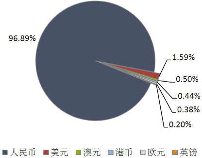从投资币种来看,人民币产品发行4868款,环比增加86款,市场占比下降0.62个百分点至96.89%;美元产品发行了80款,环比增加17款,市场占比上升0.31个百分点至1.59%;澳元产品发行25款,环比增加3款,市场占比上升0.05个百分点至0.50%;港币产品发行22款,环比增加3款,市场占比上升0.05个百分点至0.44%;欧元产品发行19款,环比增加6款,市场占比上升0.11个百分点至0.38%;英镑产品发行10款,环比增加5款,市场占比上升0.10个百分点至0.20%。(图2)