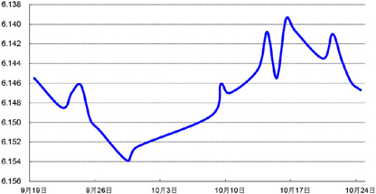 上周,人民币对美元中间价小幅走强0.10%;即期市场成交价延续此前窄幅震荡格局,当周累计上涨0.11%,周五收盘于6.1240元。预计短期内人民币走势仍将趋稳。