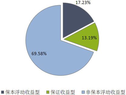 从收益类型来看,保证收益型产品发行了557款,环比减少162款,市场占比下降1.12个百分点至13.19%;保本浮动收益型产品发行了728款,环比减少162款,市场占比下降0.48个百分点至17.23%;非保本浮动收益型产品发行了2939款,环比减少476款,市场占比上升1.60个百分点至69.58%。(图1)
