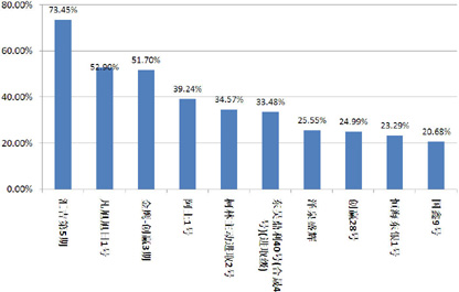 经过上月的上升后,本月集合信托收益出现了分化,短期产品继续上扬,而中长期产品已经开始回调:1-2(含)年期限段产品平均预期收益率10.16%,环比上升20.64BP,其中,房地产领域平均预期收益率10.68%,环比上升34.71BP,工商企业领域平均预期收益率10.24%,环比上升24.28BP,基础设施领域平均预期收益率10.00%,环比上升1.26BP;2-3(含)年期限段产品平均预期收益率9.34%,环比下降61.00BP,其中,房地产领域平均预期收益率9.65%,工商企业领域平均预期收益率10.00%,基础设施领域平均预期收益率9.65%,环比下降13.33BP;3年以上期限段产品平均预期收益率8.97%,环比下降153.33BP,其中基础设施领域平均预期收益率8.20%,环比下降230.00BP。(图6)