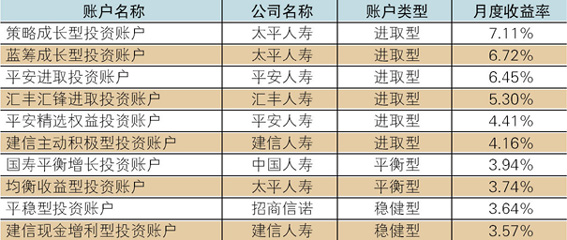 表2 2014年10月投连险投资账户收益表现TOP10