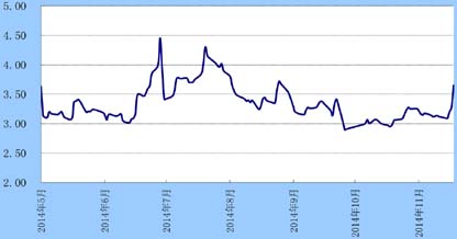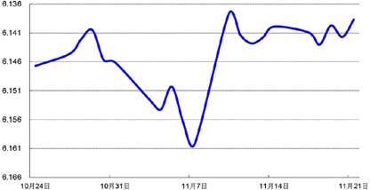 上周,人民币对美元中间价小幅走强,当周累计升值0.02%;即期市场成交价呈窄幅震荡,周初因沪港通的开闸提振了人民币走势,但其影响随后有所淡化,当周人民币即期价格小幅升值0.09%至6.1249元。