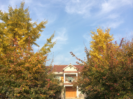 浙江省湖州长兴小浦镇方一村的秋天,金色灿灿,醉人心脾。银杏树上,一把把金色的小扇子有的柠檬黄,有的金黄,有的褐黄,有的黄绿一体,煞是养眼。微风拂过,小扇子又如金色的蝴蝶漫天飞舞,轻轻掉落在泥土上,好似给大地铺上一层金色的毯子。小狗在毯子上嬉戏,鸡鸭驴儿闲庭信步自由觅食,花园般美丽的乡村在晨曦中醒来。掩映在高大银杏树后的民居、接送孩子的校车,一派富裕安逸宁静祥和的景象。中国南方有如此农村景象?游客们是否把眼光收回到这片土地。■ 马茵/图文