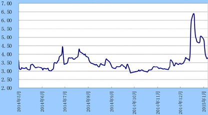 货币市场:由于去年底财政存款投放后资金维持宽裕,降低了央行公开市场操作的必要性,因此,上周央行公开市场操作依旧暂停。质押式回购主要品种收益率继续下行,其中,7天期品种收益率较去年末下行129个基点至3.78%。