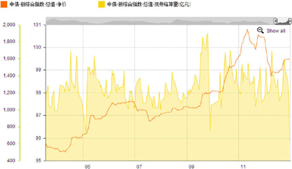 图4 2014年中债新综合净价指数走势