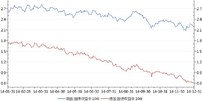 图10 2014年美国与德国十年期国债收益率走势