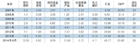 表1 财富管理市场供需表(截至2014年6月末) (单位:万亿)