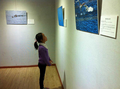 他拍摄野生鸟类的时间延续了六年,他坚持下来了。展览吸引了不少人来参观,观众中孩子很多,一个小女孩看得很认真,我一下子看到了希望。