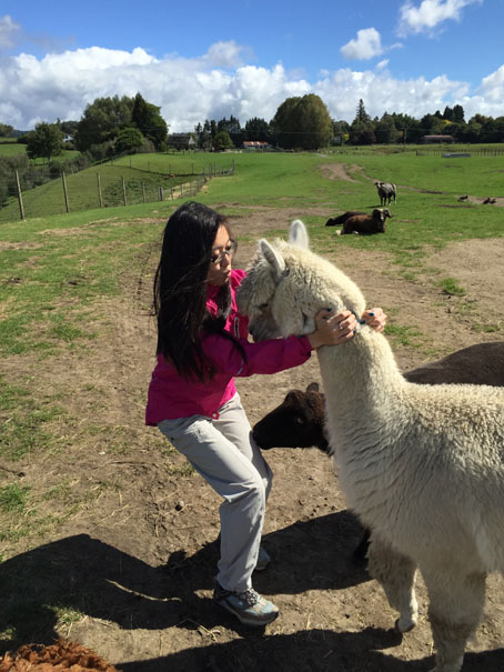 来到新西兰,这个被称作“羊背上的国家”,怎能不和羊群们亲密接触,再看看如何剪羊毛。这里是专门为游客打造亲密接触的“乐园”。刚一进门,就看到两只硕大的羊!感觉像羊爷爷一样,专心的低着头,任周围来往的车辆都打搅不了他们那颗吃草的心。到达基地,先购买“游览+活动”联票,乘上跟拖拉机差不多大的车去往各种牛羊的世界,车上有导游和游客讲解如何区分高山牛、安格斯牛、腰带牛和奶牛知识。穿越在无穷大的草原上,牛羊成群的陪伴在你的身边,真是触手可及的距离,它们不怕人,有时还会朝着游览车缓缓走来,对视一下,又华丽的转身离去了。最有趣的要数到达山顶时和羊驼的亲密接触了,导游为游客们准备了它们的食物,抓在手里,一颗颗的引诱着白色的、棕色的只要你喜欢的羊驼,它们很温顺,舌头热乎乎的柔软的很,趁着不注意,还可以对它们搂搂抱抱!可千万不要一次就把吃的都拿出来,否则就会感受到它们温和的外表下也有一颗狂野的心了。