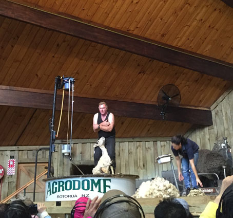 回到基地,就是剪羊毛表演了。先是上来20几只羊,每个品种一只,名字实在是记不住了。接着跑上来一只毛茸茸的小白羊,大叔三下五除二的给它剃了个全身的“秃瓢”,利马变身小羊羔状,站都站不稳了。