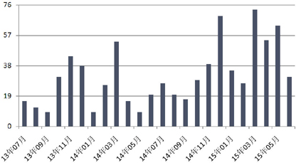 图3 2014年1月至2015年6月银行理财产品月度平均预期收益率