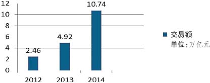 图2 2012-2014年银企直联业务交易额增长情况