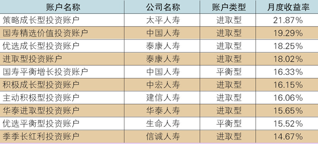 投连险账户业绩表现:A股市场反弹促使月度平均收益率超6%,太平人寿策略成长型投资账户表现最佳
