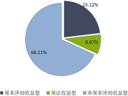 从收益类型来看,保证收益型产品发行510款,环比减少435款,市场占比下降8.67个百分点至8.34%;保本浮动收益型产品发行1359款,环比增加217款,市场占比上升2.55个百分点至23.12%;非保本浮动收益型产品发行4010款,环比增加544款,市场占比上升5.79个百分点至68.21%。(图1)