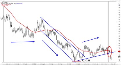 展望后市,澳大利亚通胀率处于目标范围之内,就业市场态势良好,澳元对美元汇率也令澳联储较为满意,因此,预计澳联储将继续中性偏宽松的货币政策,利率不变的可能性较高,澳元对美元维持低位震荡走势,波动区间为【0.63,0.78】。(图4)